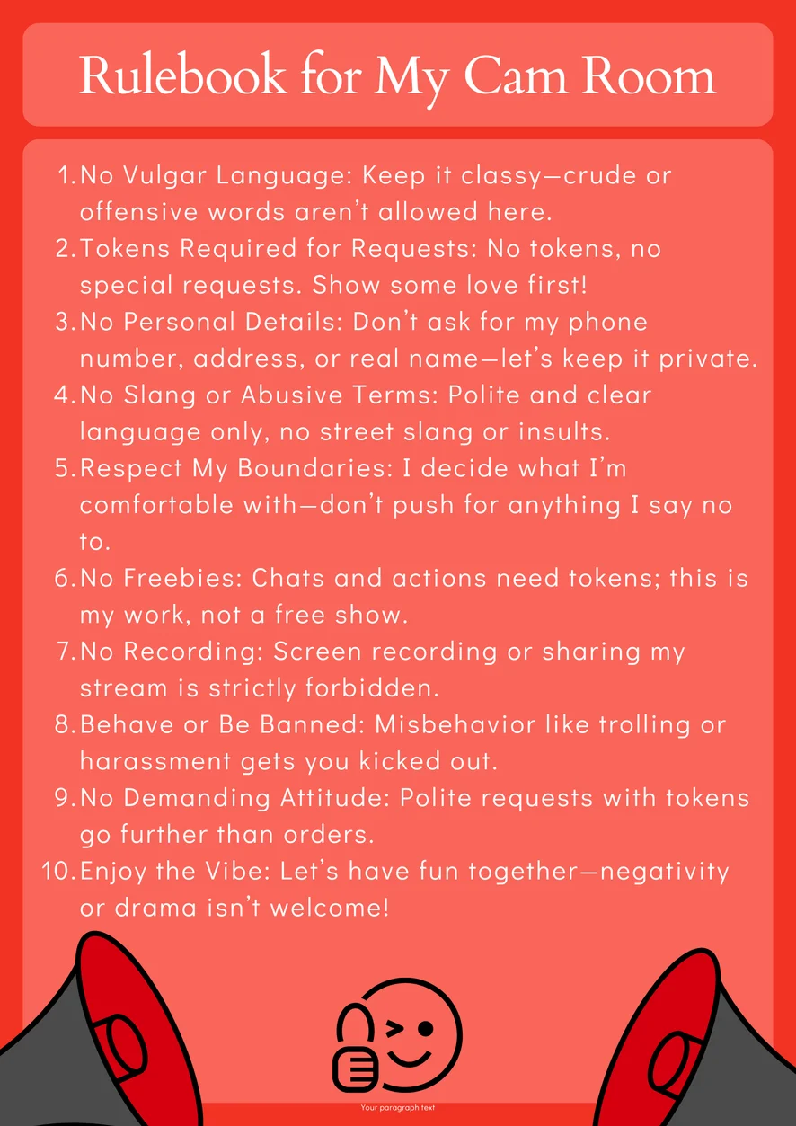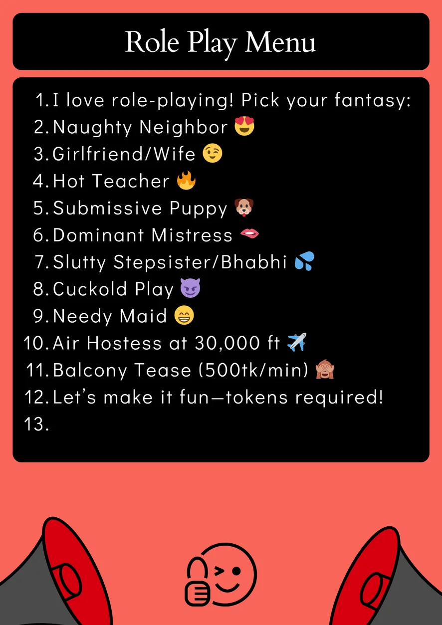 أهيجاو, خف الجمل, كلام بذئ, رقص مثير, تدليك, مكتب, عرض زيت, تدخين, صفع, رقص التويرك, مص, بوكاكي, التمثيل التنكري, وضعية الكلب, حلق عميق, تصبيع, نشوة, لعب الأدوار, دش, تعري, نطر كساس, راعية بقر, قضيب صناعي أو هزاز, ألعاب جنسية, ألعاب حلمة الصدر, عاشقات, صدر عارٍ, رقص التعري, العادة السرية